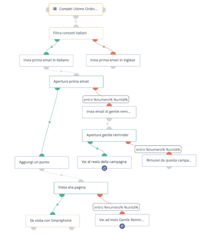 Queste sicuramente sono alcune delle feature più significative, ma il vero punto di forza della marketing automation risiede a mio avviso nella possibilità di creare flussi automatizzati di azioni basati sulle decisioni degli utenti.