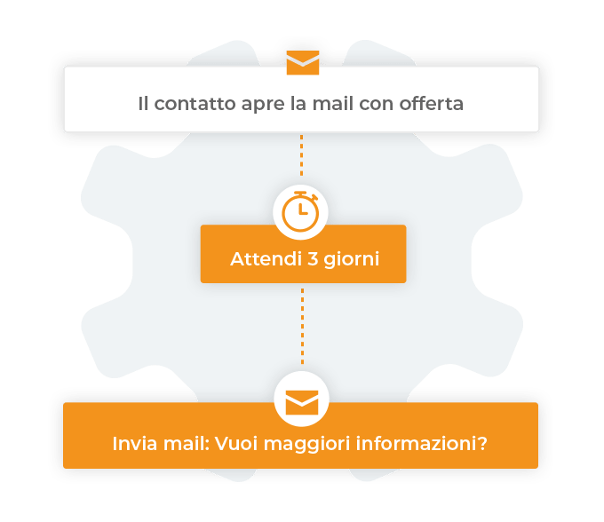 La Sales & Marketing Automation ti permette di predisporre in anticipo le mail che riceverà ogni contatto in base alle sue azioni, grazie allo strumento del Workflow. In questo modo potrai disegnare e automatizzare il percorso che dal primo contatto porta via via alla vendita e alla fidelizzazione.